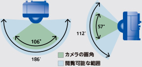 - | パン&チルト 水平回転範囲 -40°~+40° 垂直回転範囲 -45°~+10° |