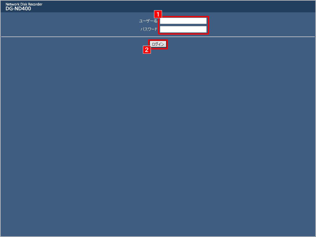 (1) 管理者ユーザーIDとパスワードを入力します。