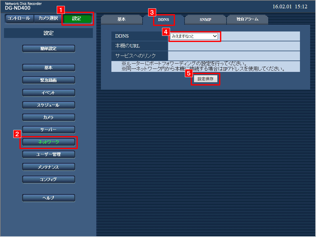 1.DDNSサービスを「みえますねっと」に設定します。