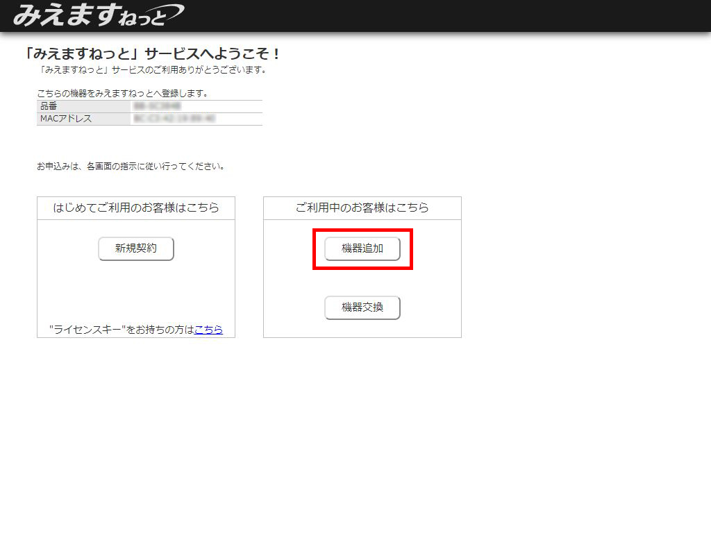※同一ネットワーク上にみえますねっと加入済みの機器がない場合、選択ボタンは表示されません。
