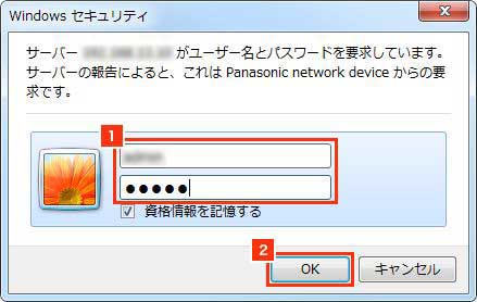 (1) カメラの管理者ユーザー名とパスワードを入力します。