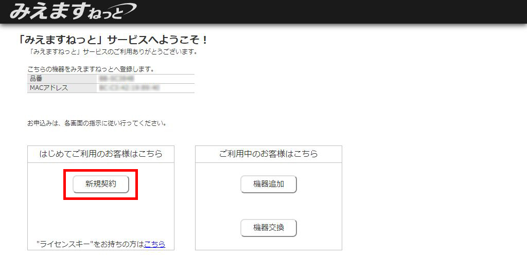 「みえますねっと」サービスは複数の拠点のカメラでも1つの契約としてご登録いただけます。すでにご利用中の契約があり、2台以上登録する場合は機器の追加/子機器の登録から登録してください。