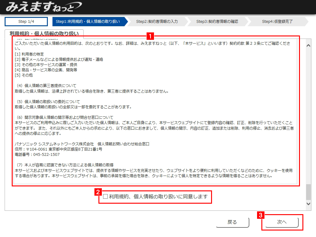 2利用規約、個人情報取り扱いの確認