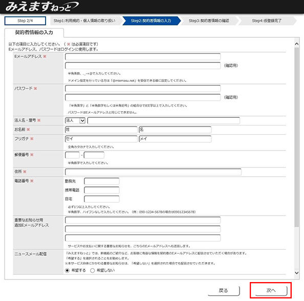 (1) 契約者情報を入力します。