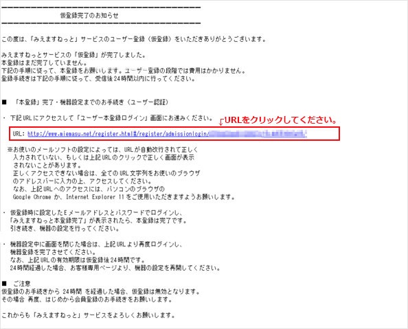 ※本登録用URLの有効期限は24時間です。24時間以内に本登録を完了してください。