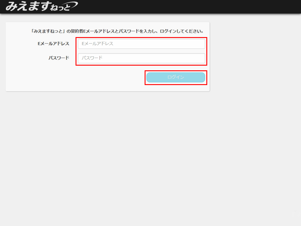 会員情報の入力で登録したEメールアドレスとパスワードを入力し、「ログイン」をクリックします。