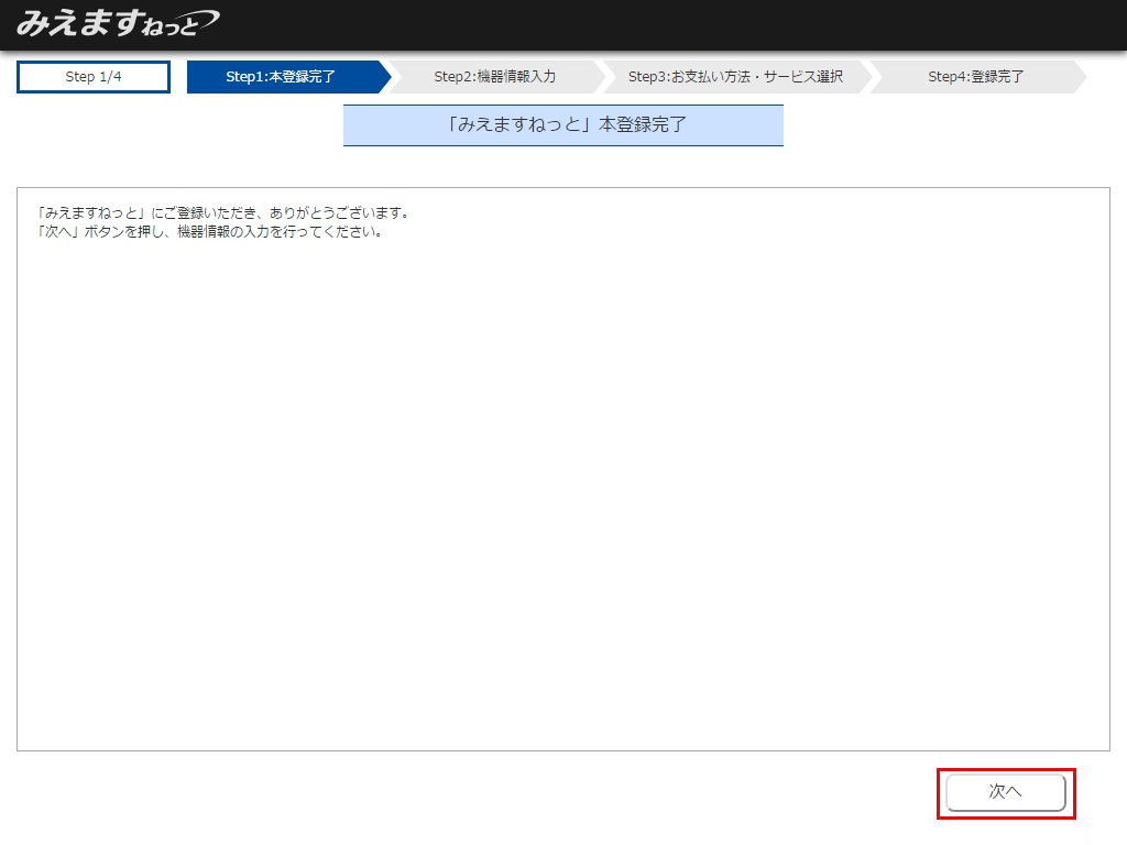 以上でユーザー登録は完了です。続いて、機器情報の入力を行います。