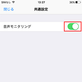 また、アプリの設定画面で音声モニタリングをONにする必要があります。