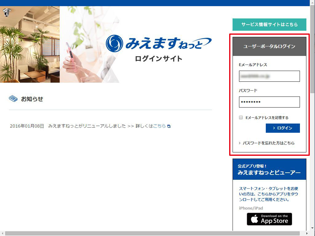 みえますねっとにログインします。