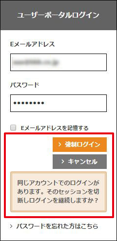 [強制ログイン]ボタンをクリックすると、ログイン中の接続を切断してログインします。
