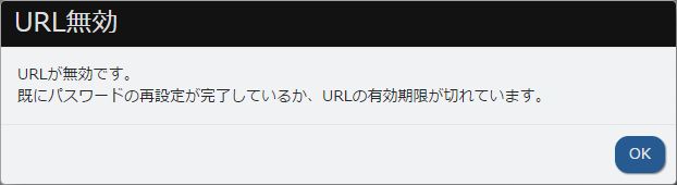 - 有効期限が切れているなどの理由で、手順3で受信したEメールにあるURLが無効の場合は、そのURLにアクセスすると以下の「URL無効」画面が表示されます。