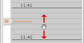| ④[スケール拡大]ボタン | クリックしてタイムラインの時間間隔を短くします。 1日→3時間→1時間→30分→10分→5分→1分の単位で変更できます。 |