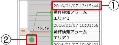 イベントを検知した時刻のタイムライン上に表示されます。 |
