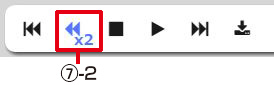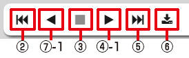 | ⑦-2 | [1コマとばし逆再生]ボタン | x2:画像を1コマとばしで逆再生します。[逆再生]ボタンを二度クリックします。 |