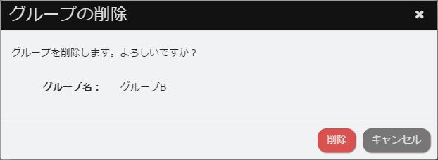 - グループを削除しない場合は[キャンセル]ボタンをクリックします。「グループの削除」画面が閉じます。