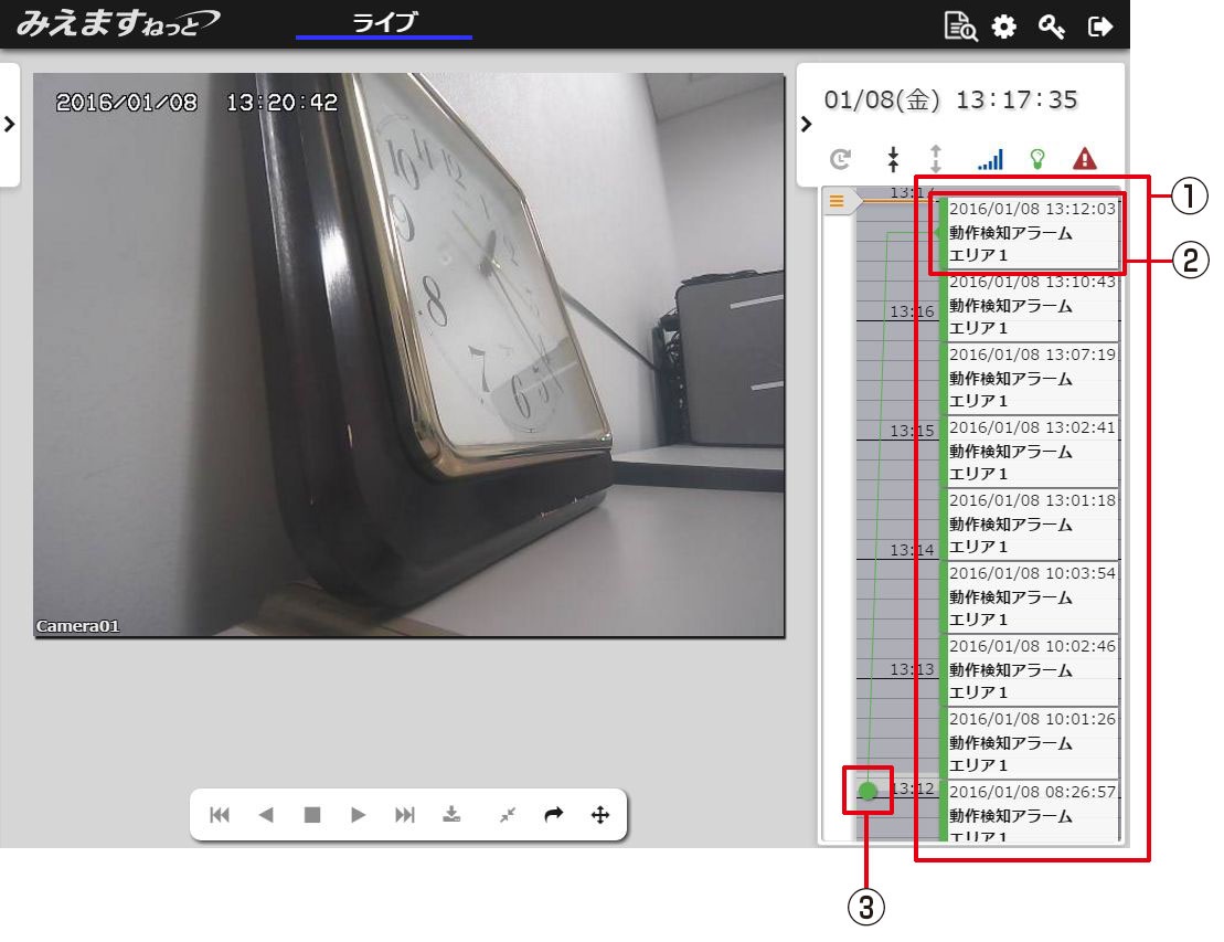機器にセンサー検知などのイベントが発生したときに、タイムライン上にそのイベント情報を表示します。