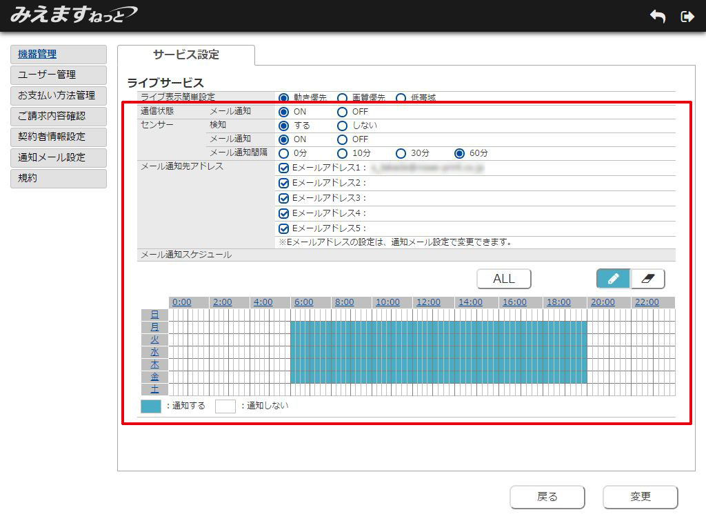 | センサー検知通知メール | 機器がセンサー検知したことを通知します。 | 発生日時、機器名称、ドメイン名、センサー内容 |