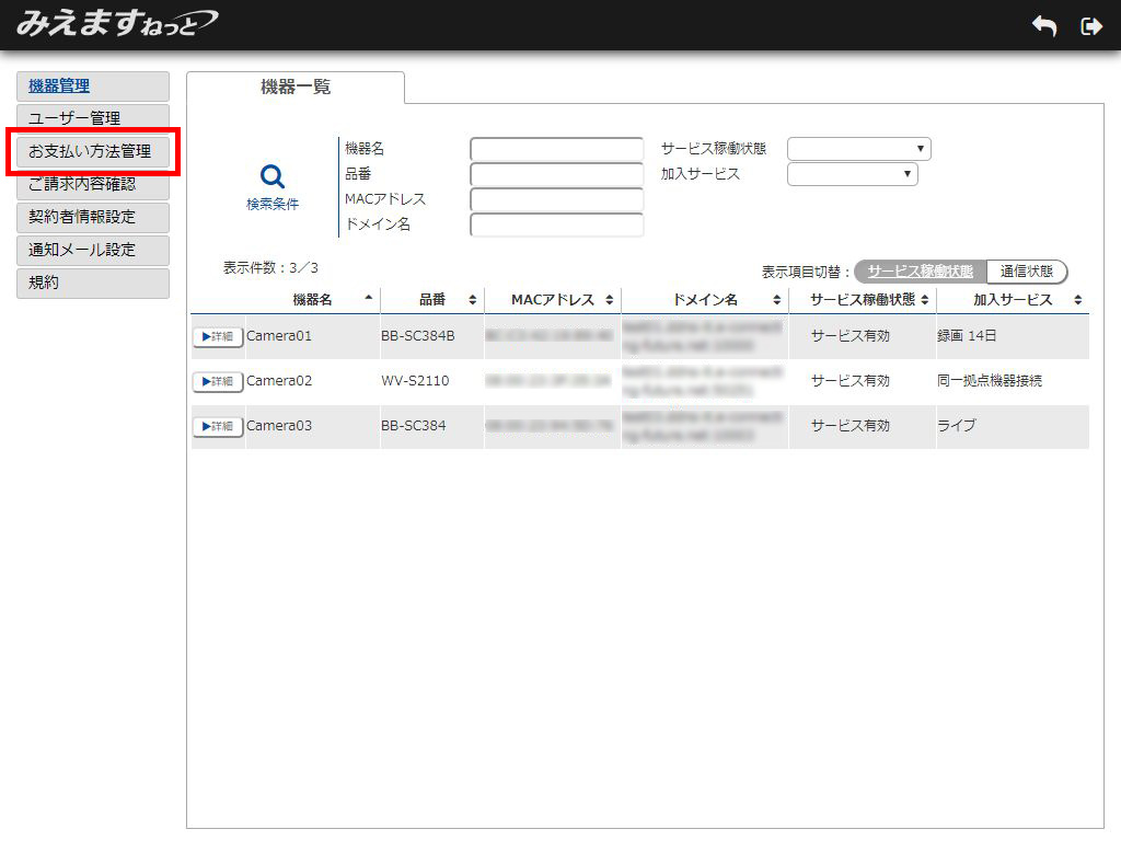 1.管理メニューの「お支払い方法管理」ボタンをクリックしてください。