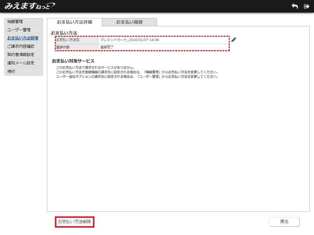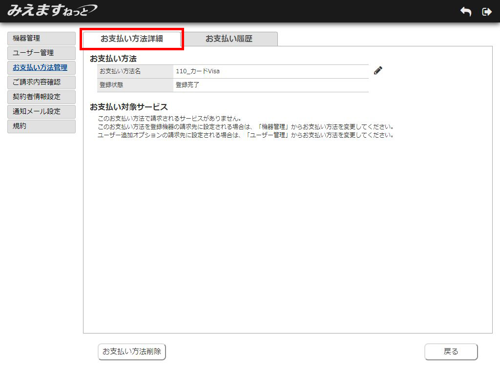 お支払い方法詳細画面が表示されます。