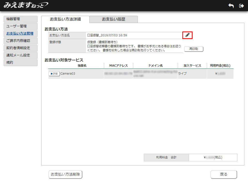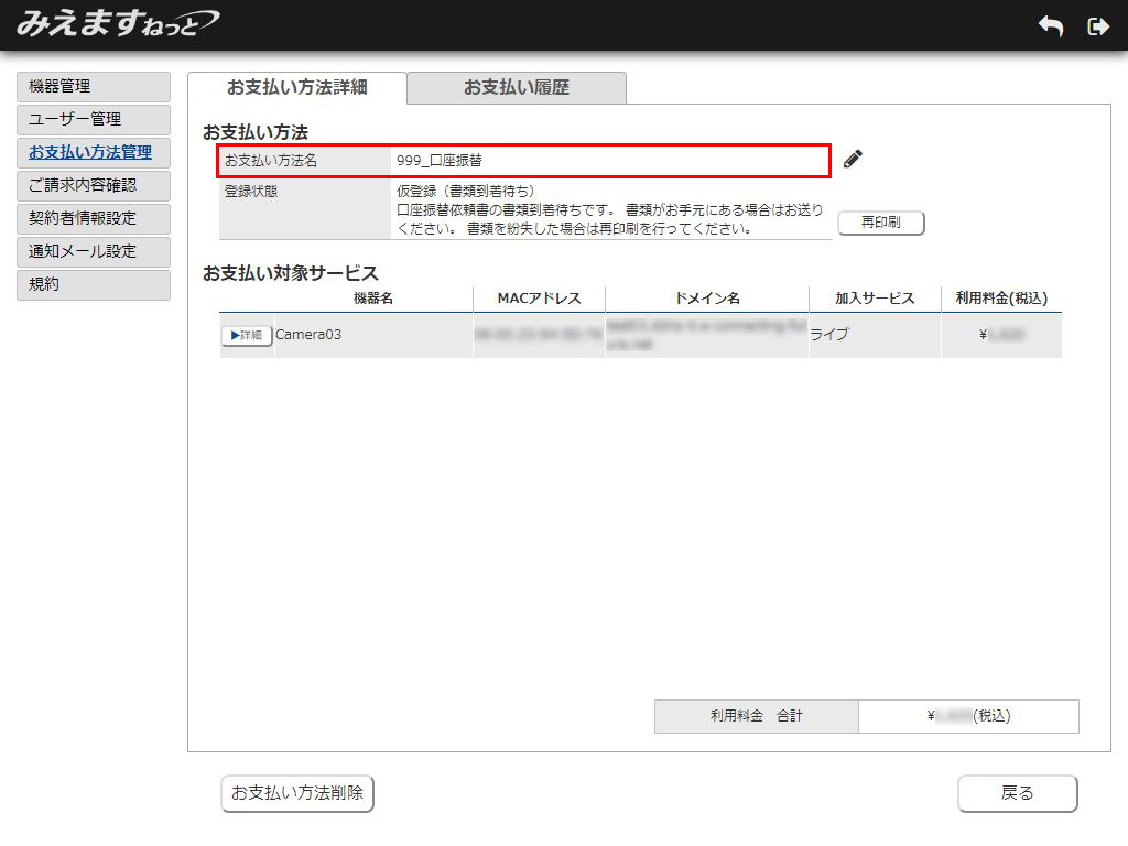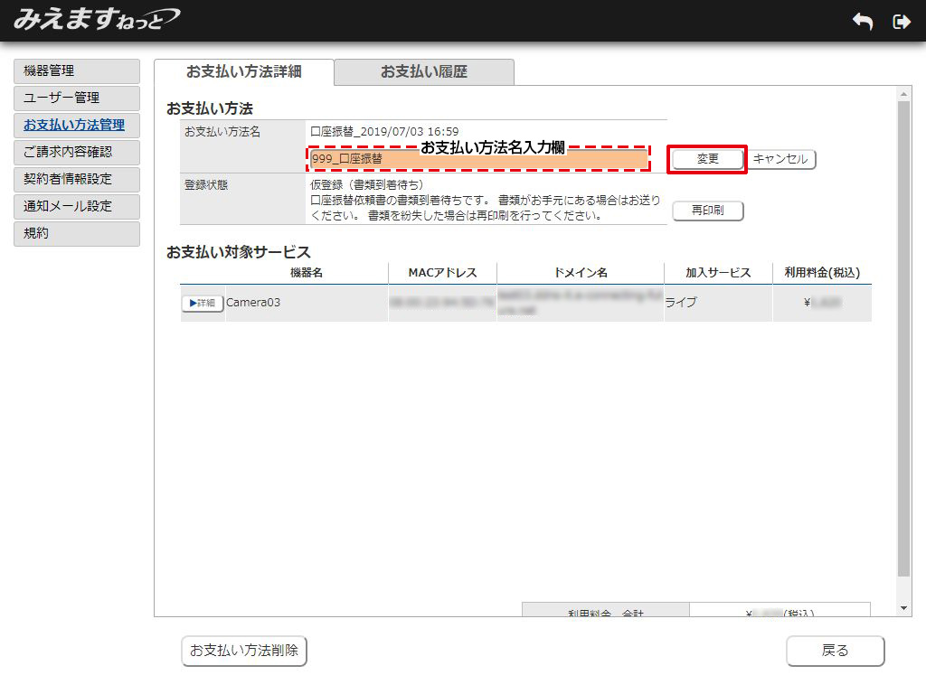 以上でお支払い方法名の変更が完了しました。