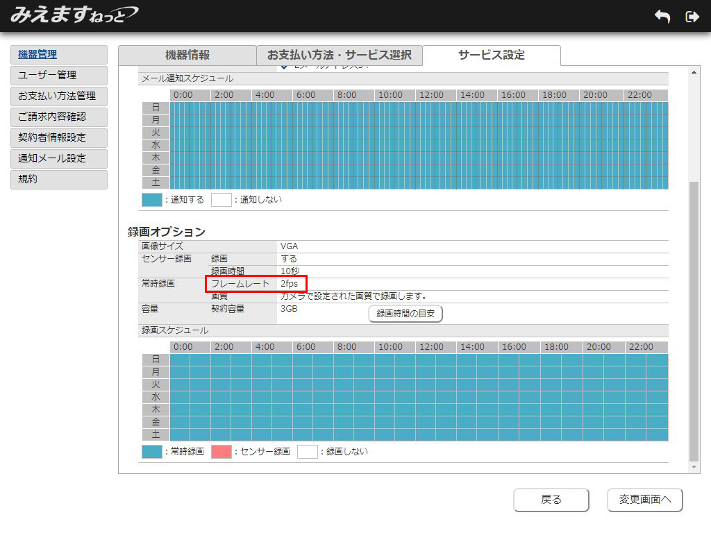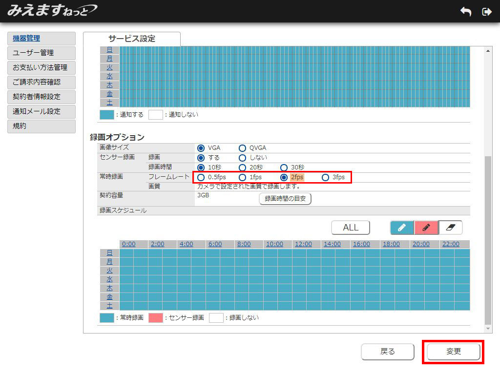 以上で録画オプションの常時録画のフレームレート設定のお手続きが完了しました。