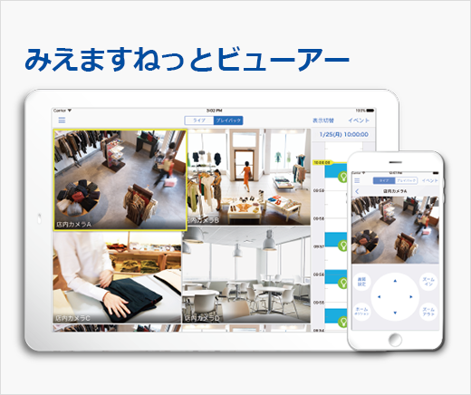 ※同時に画像を見ることができるユーザー数は、カメラに同時にアクセスできるユーザー数に依存します。カメラによって上限が異なりますので、詳しくは機器の取扱説明書をご覧ください。