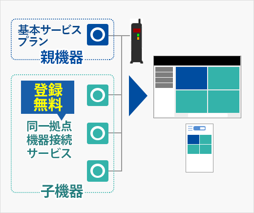 ひとつの現場に複数台の機器が設置(同じルーターに接続)されている場合、その内1台を基本サービスプランに登録すれば、残りの機器を無料でライブ表示登録することができます。複数の機器をお持ちの方に、便利でお得な機能です。