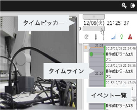 録画画像の表示は、タイムピッカーやタイムラインで確認したい日時を選ぶだけ。